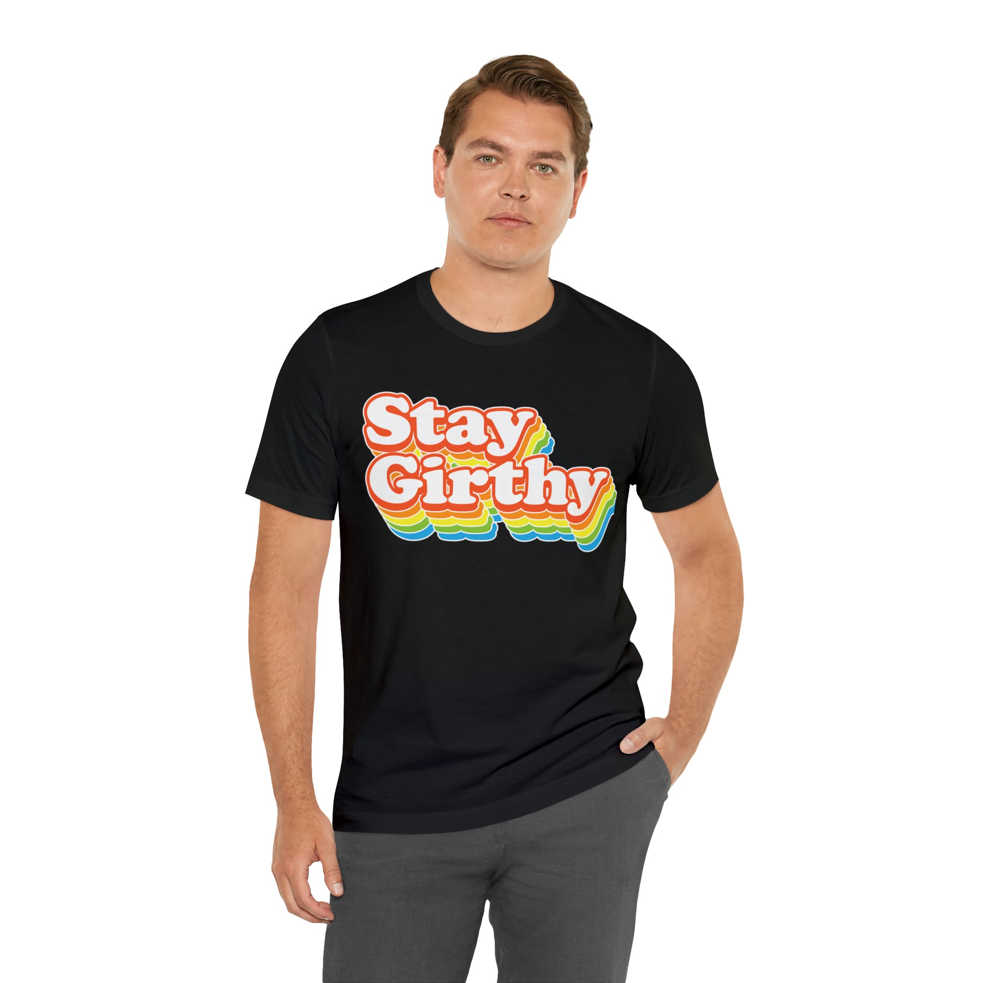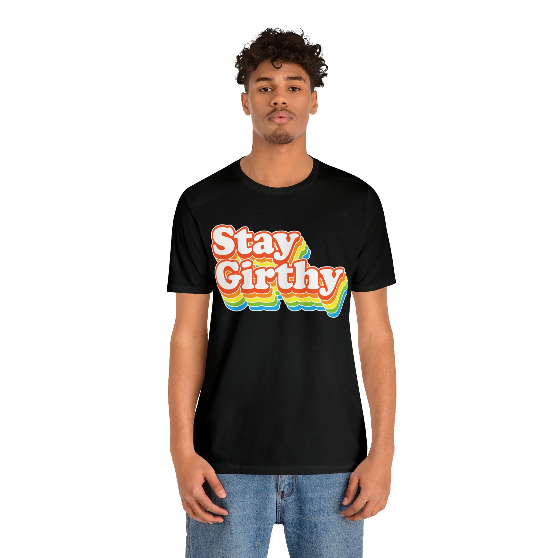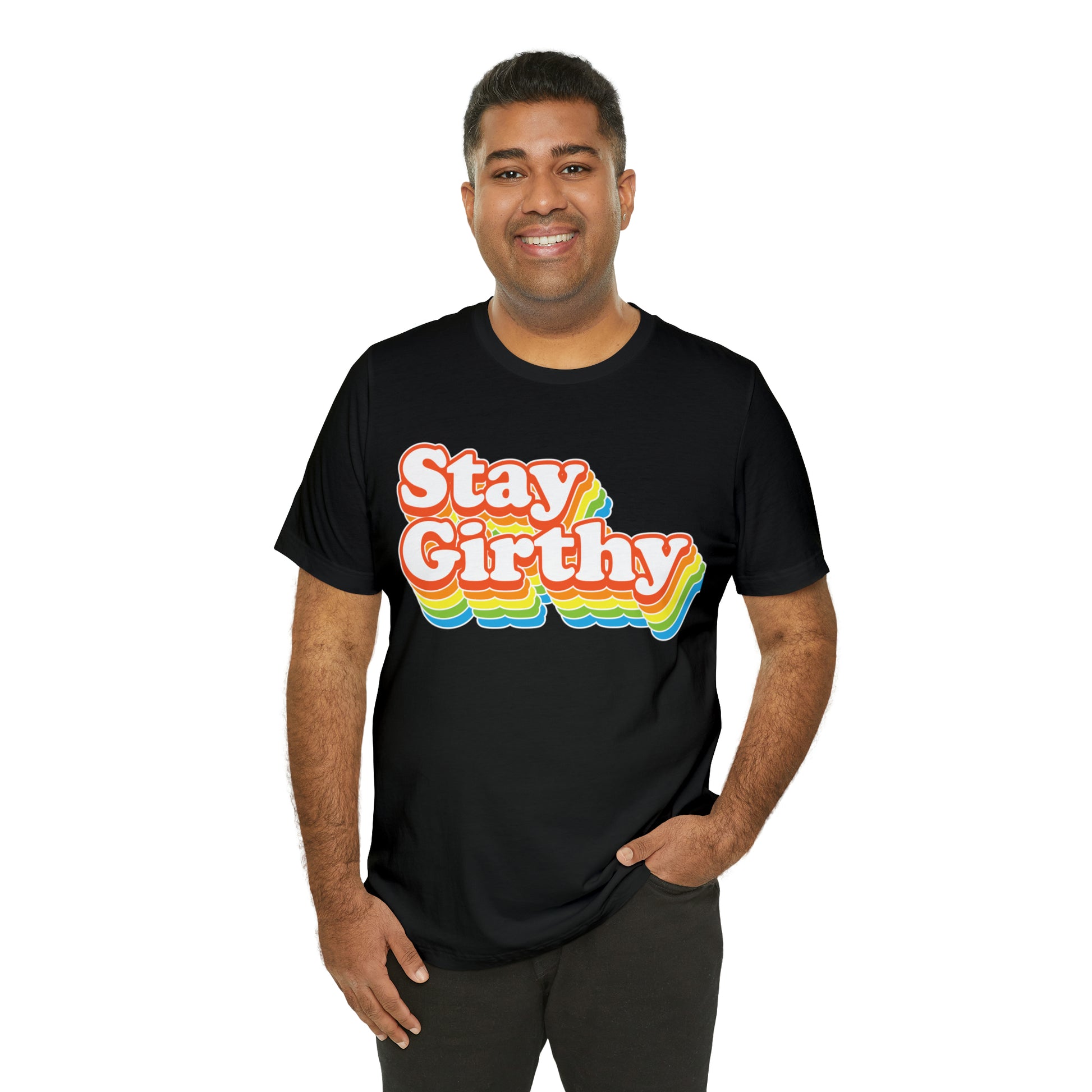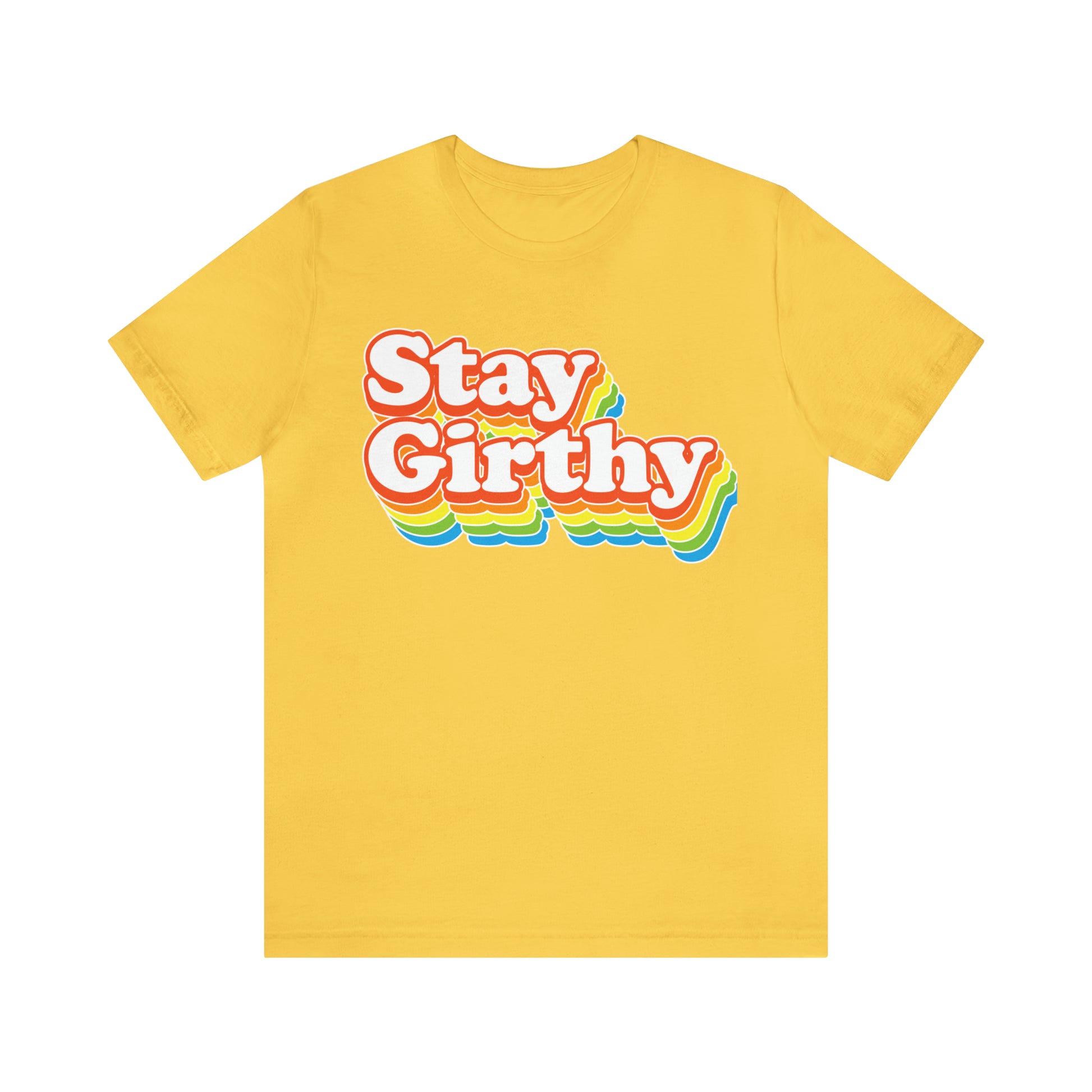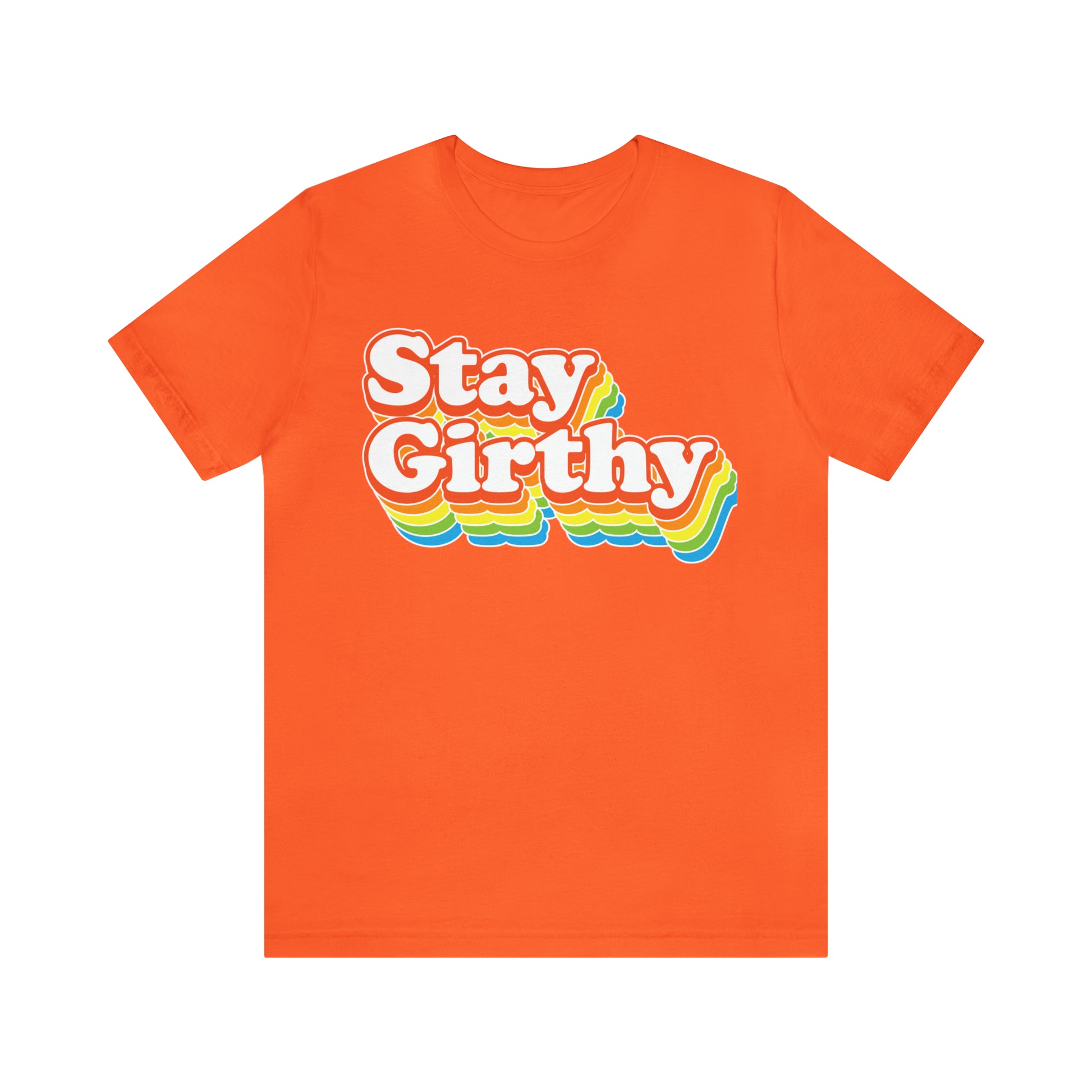 For when you want to be girthy AND groovy, we have this sweet 70s font version of our Stay Girthy t-shirt.