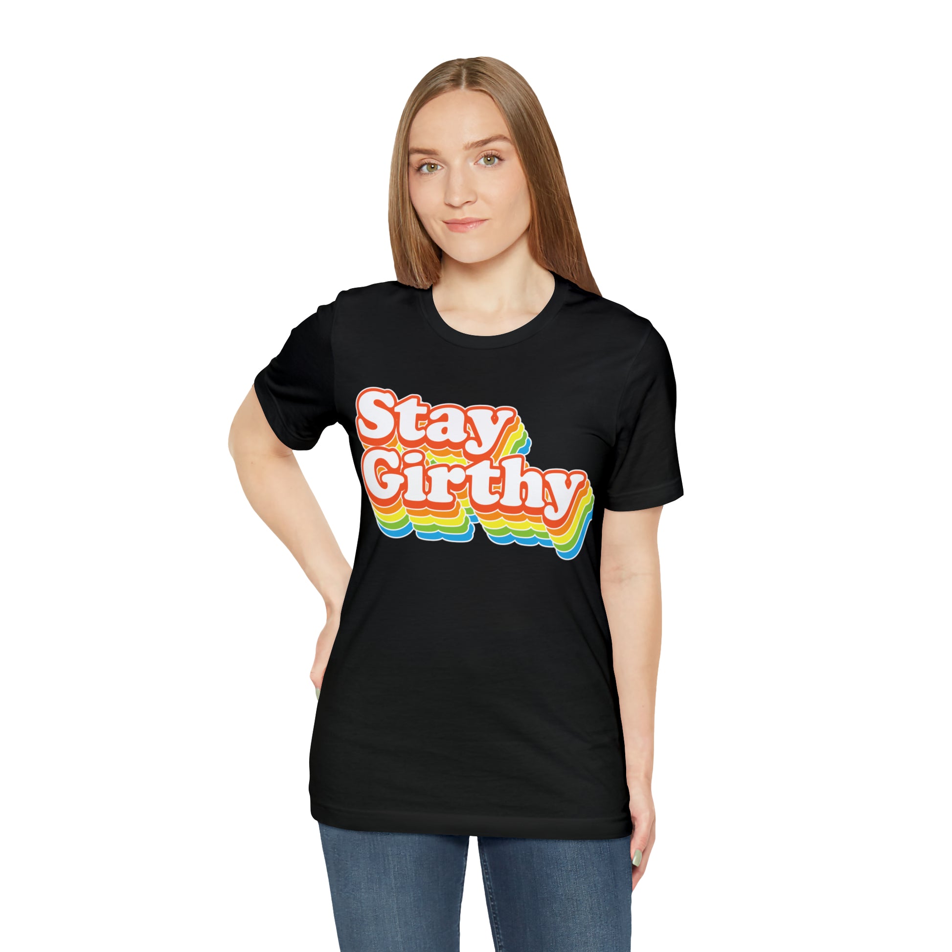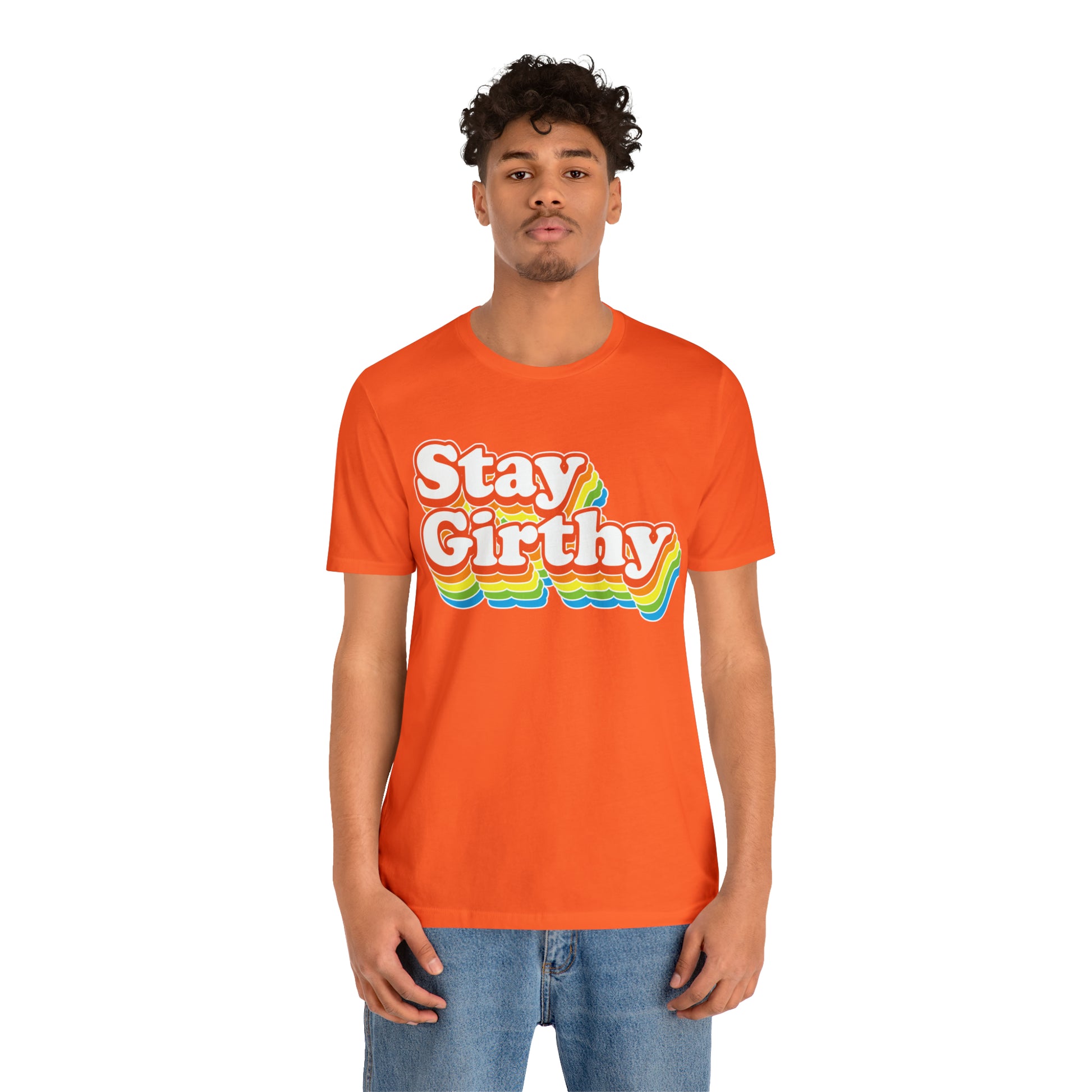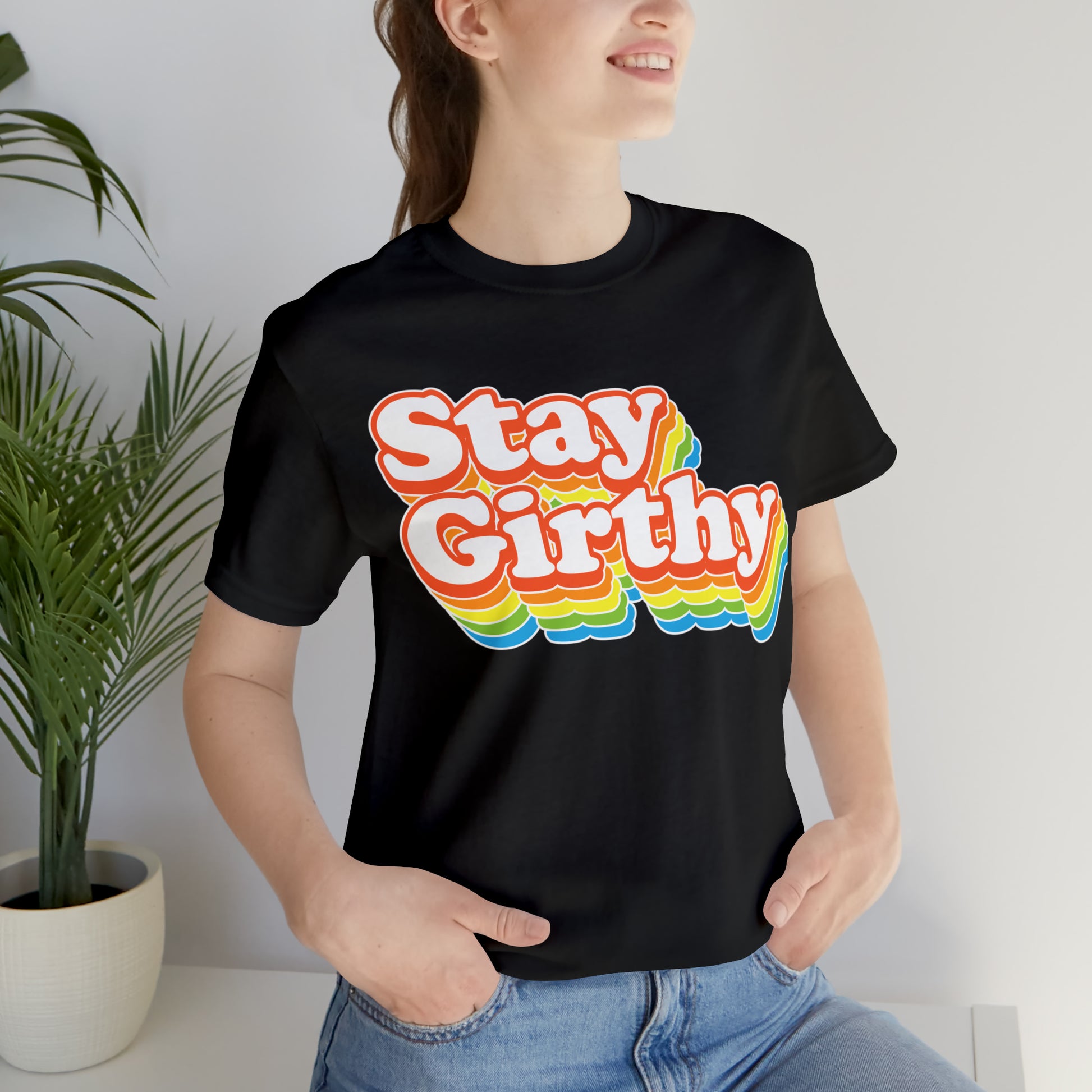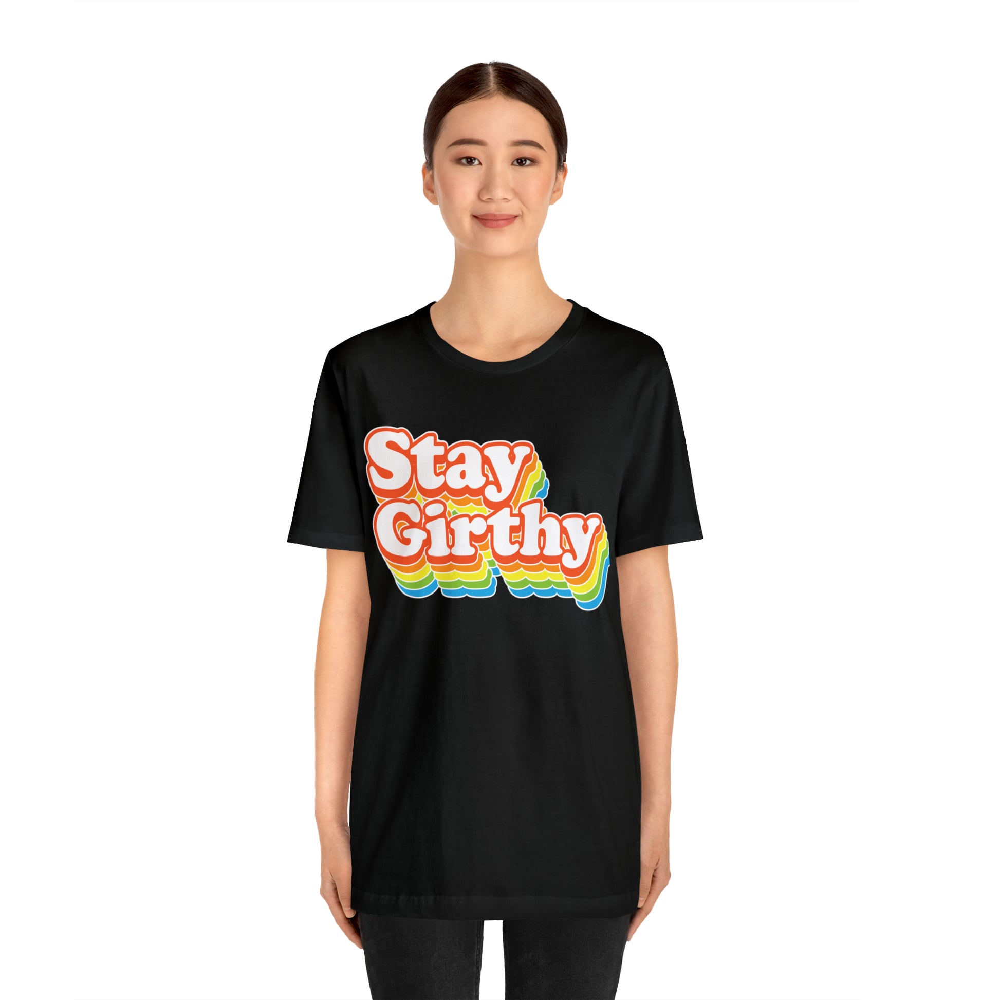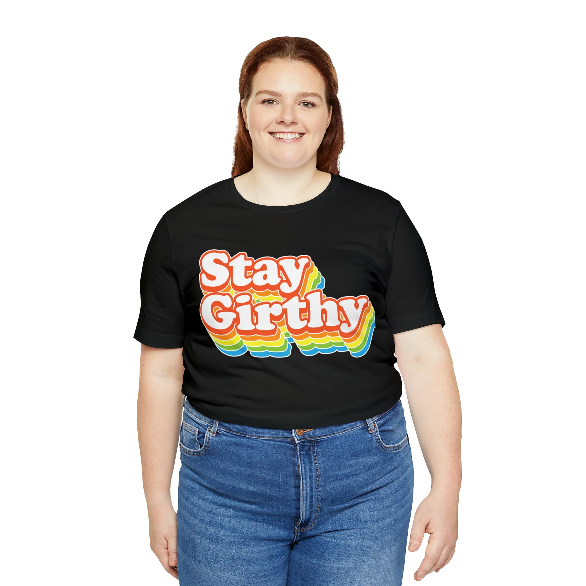 For when you want to be girthy AND groovy, we have this sweet 70s font version of our Stay Girthy t-shirt.