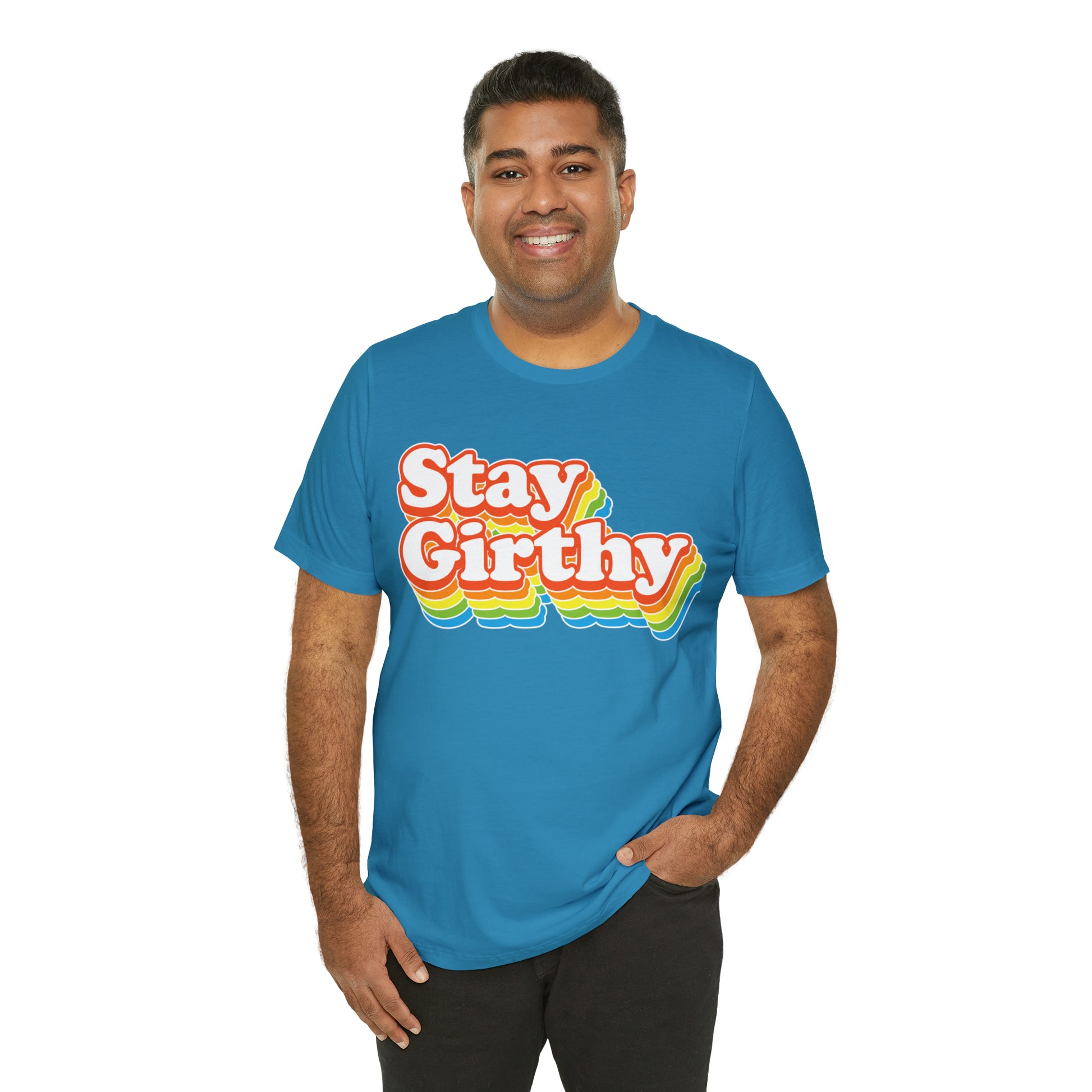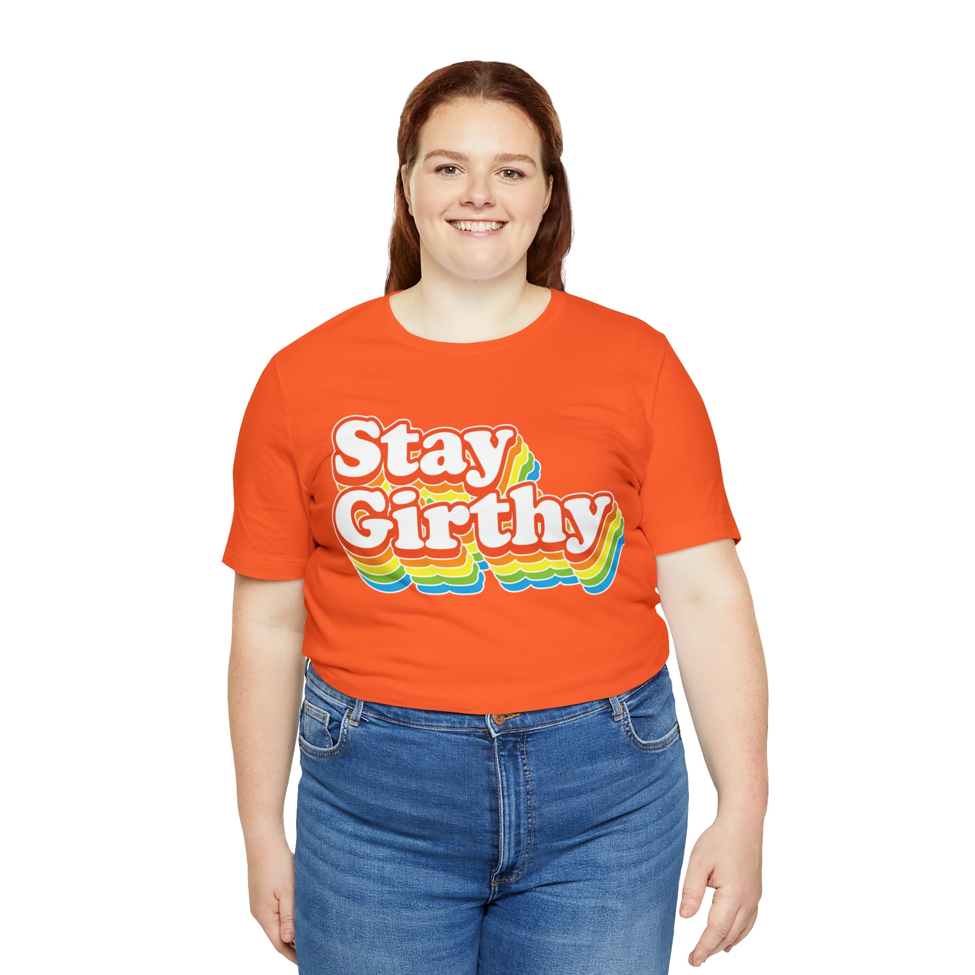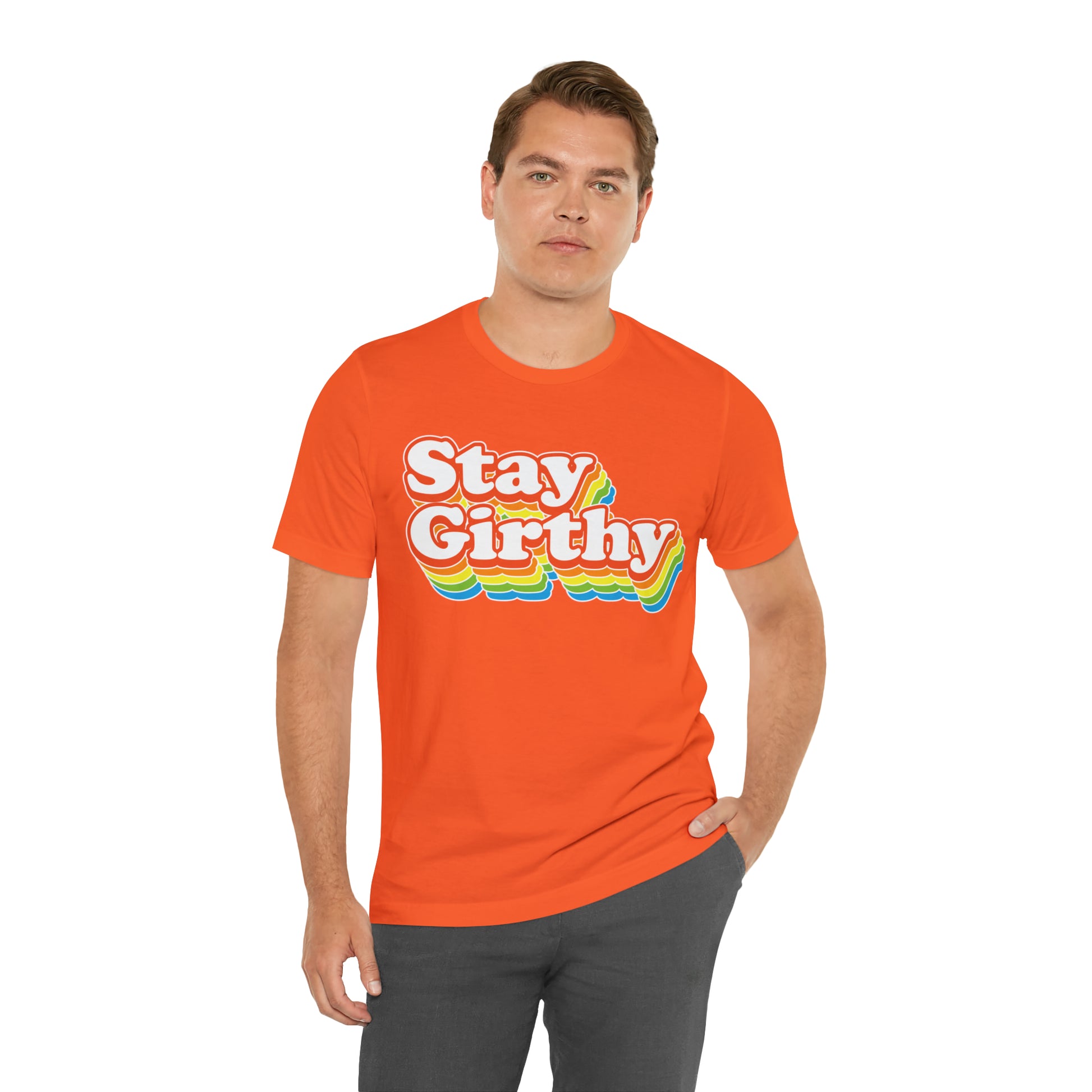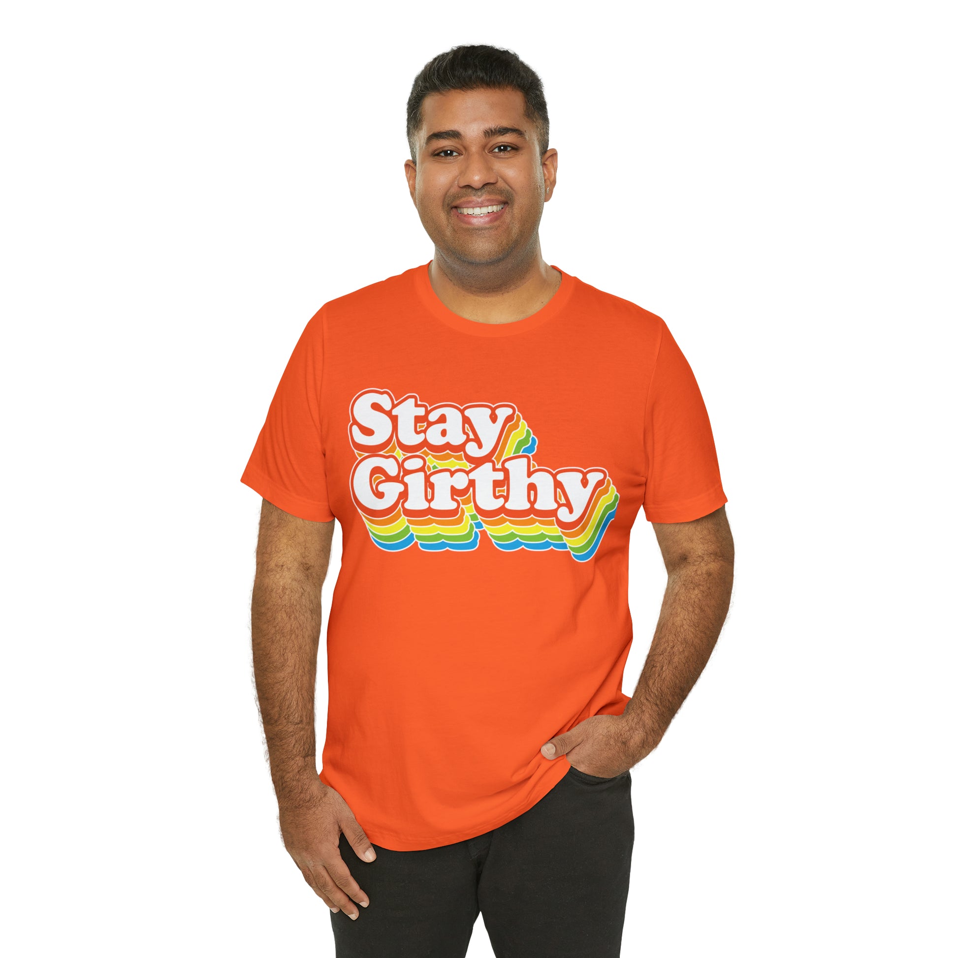 For when you want to be girthy AND groovy, we have this sweet 70s font version of our Stay Girthy t-shirt.