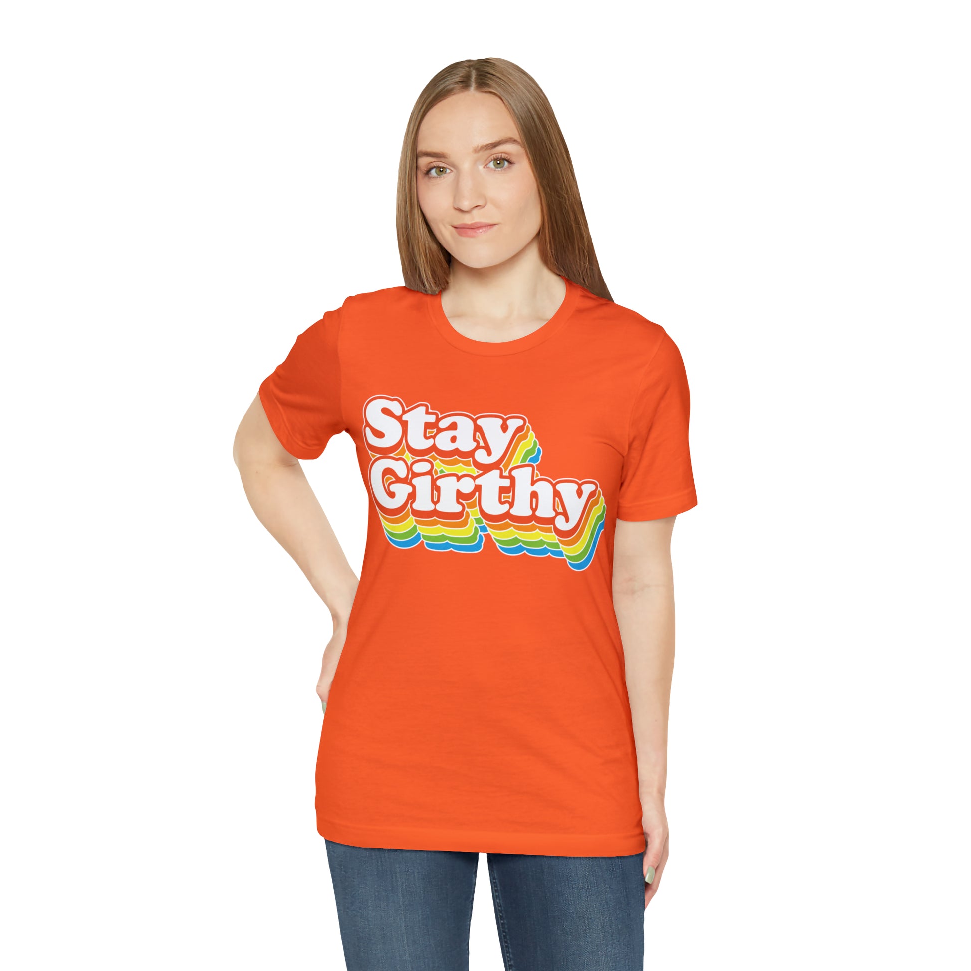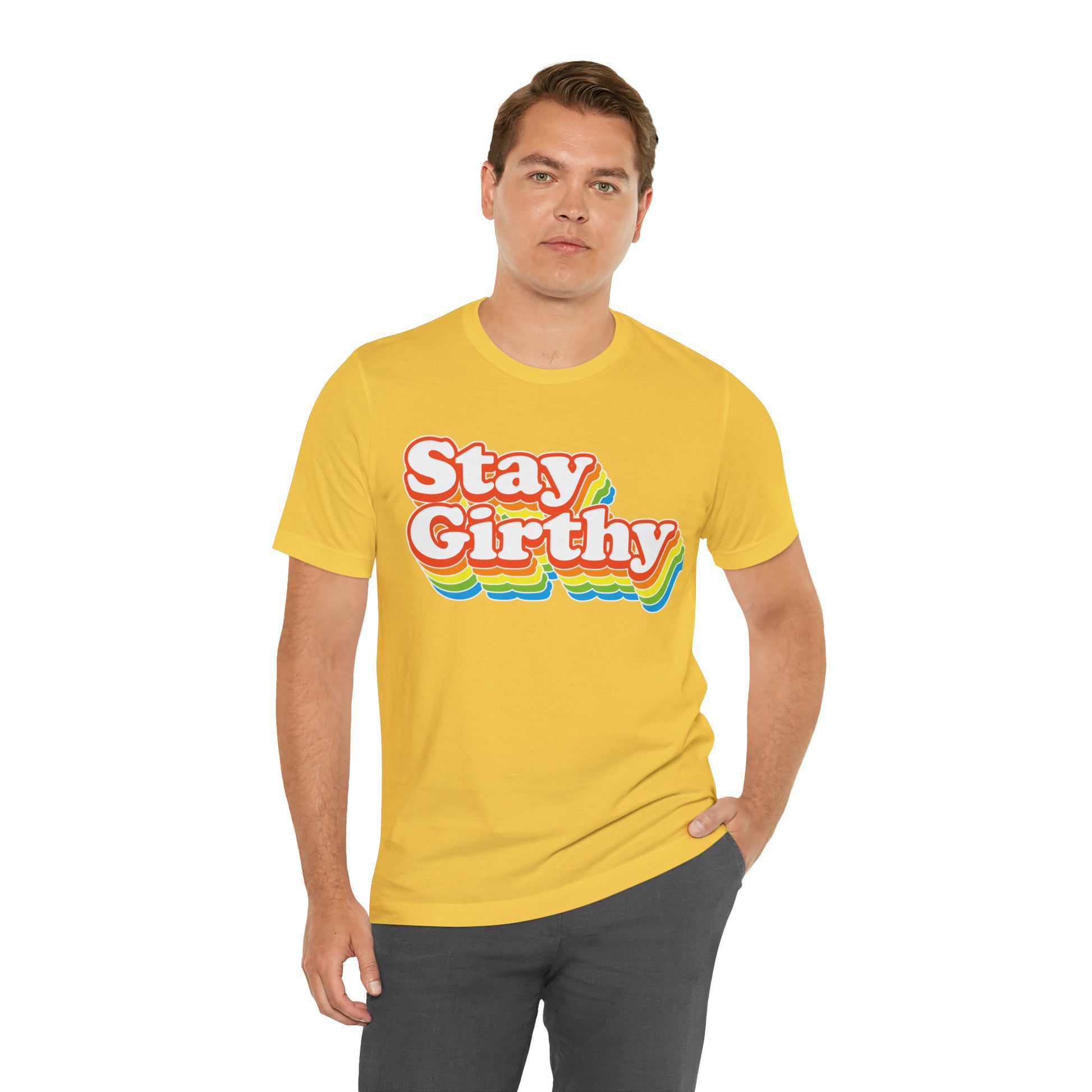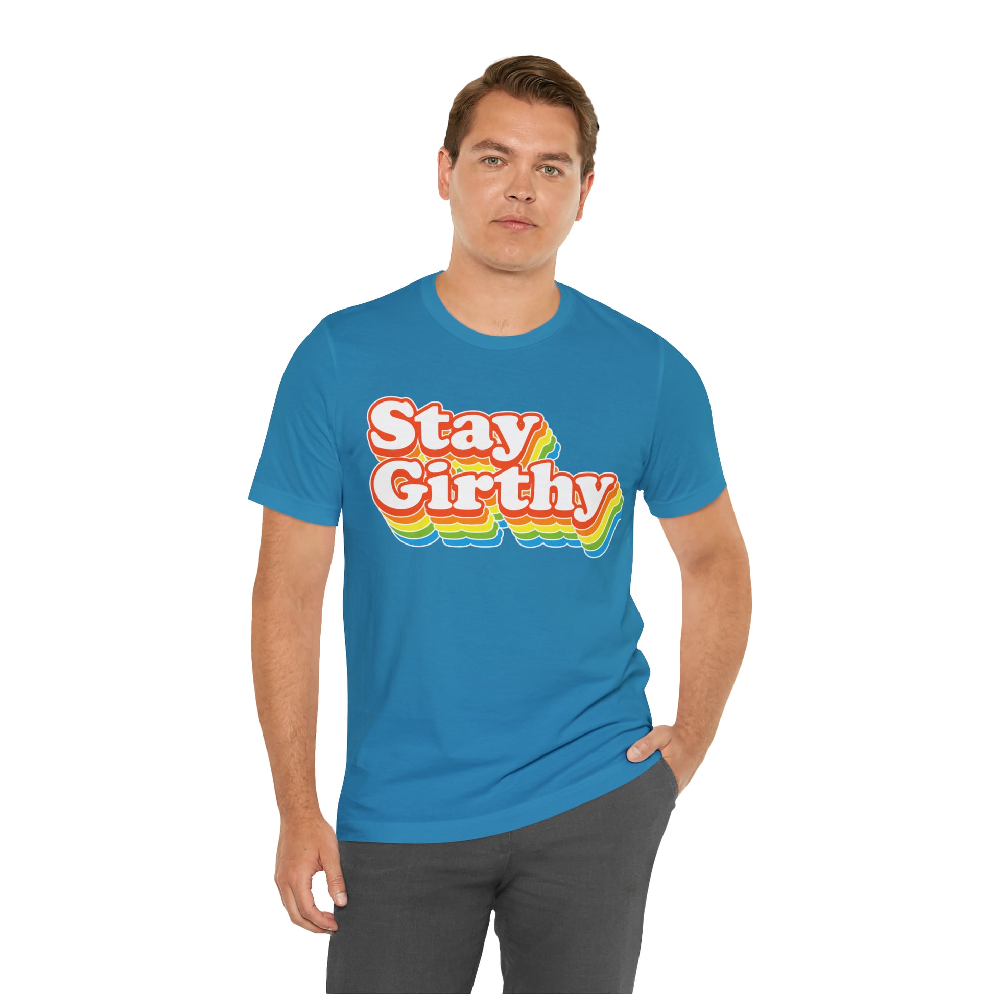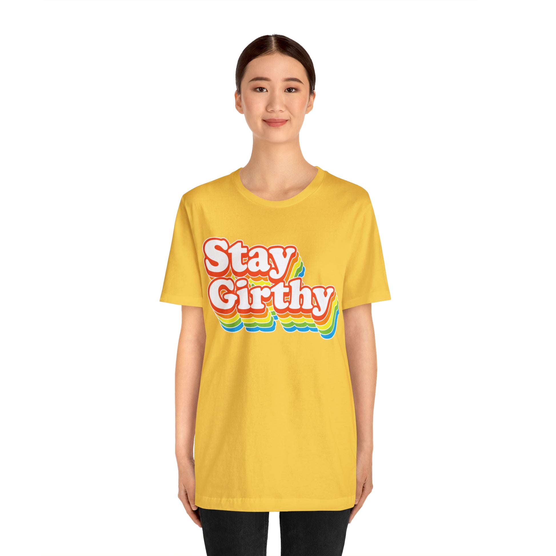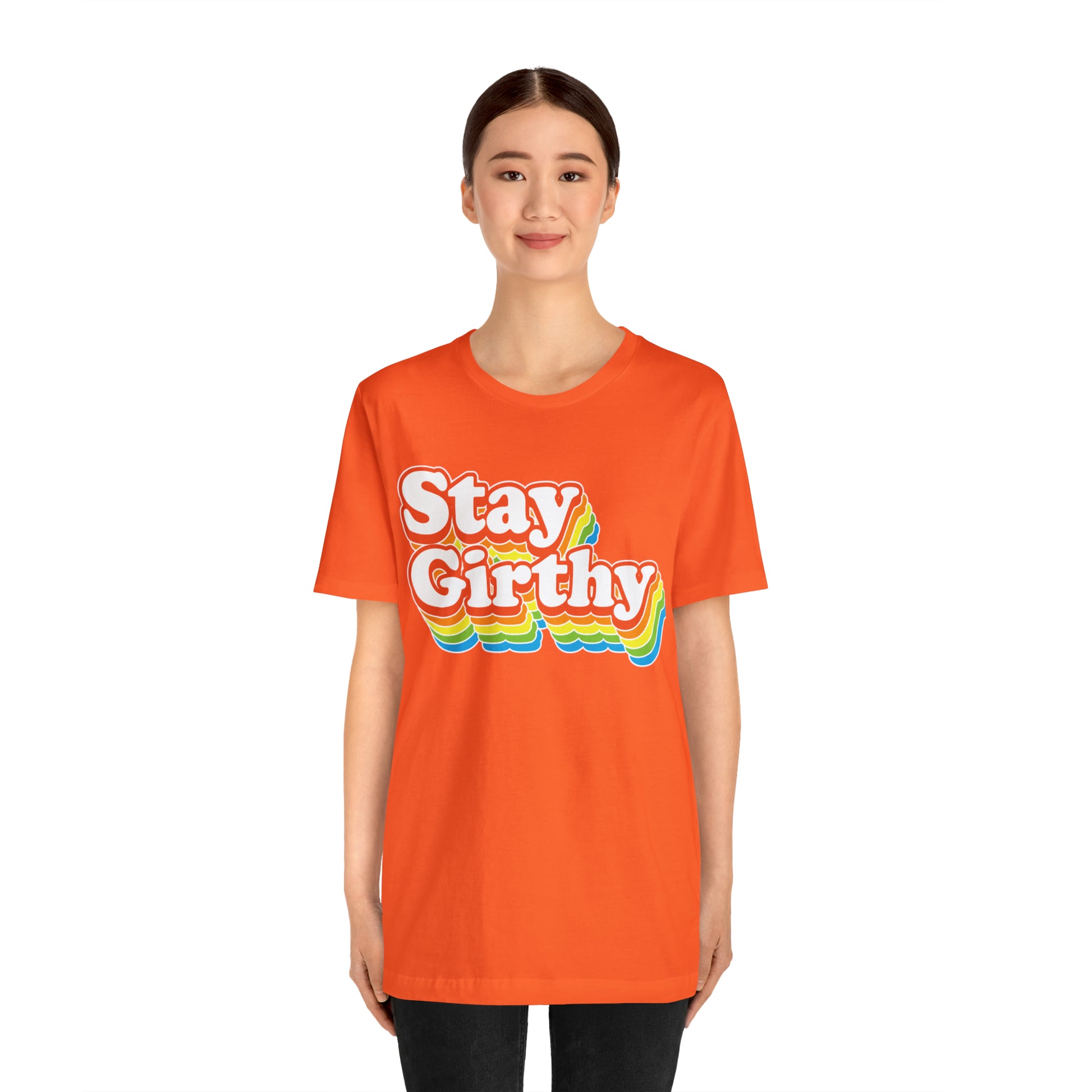 For when you want to be girthy AND groovy, we have this sweet 70s font version of our Stay Girthy t-shirt.