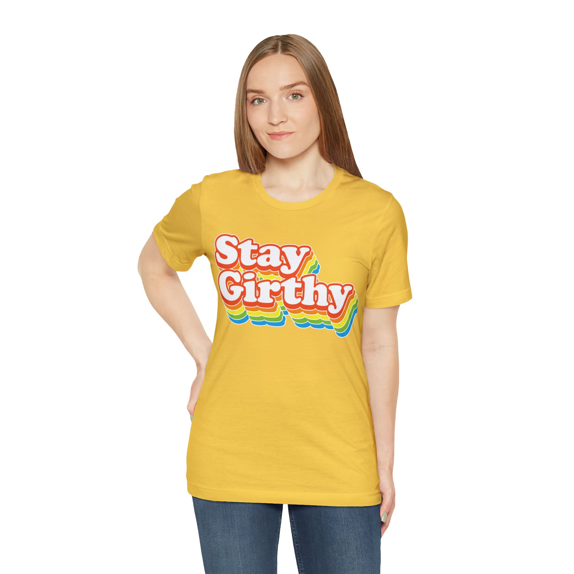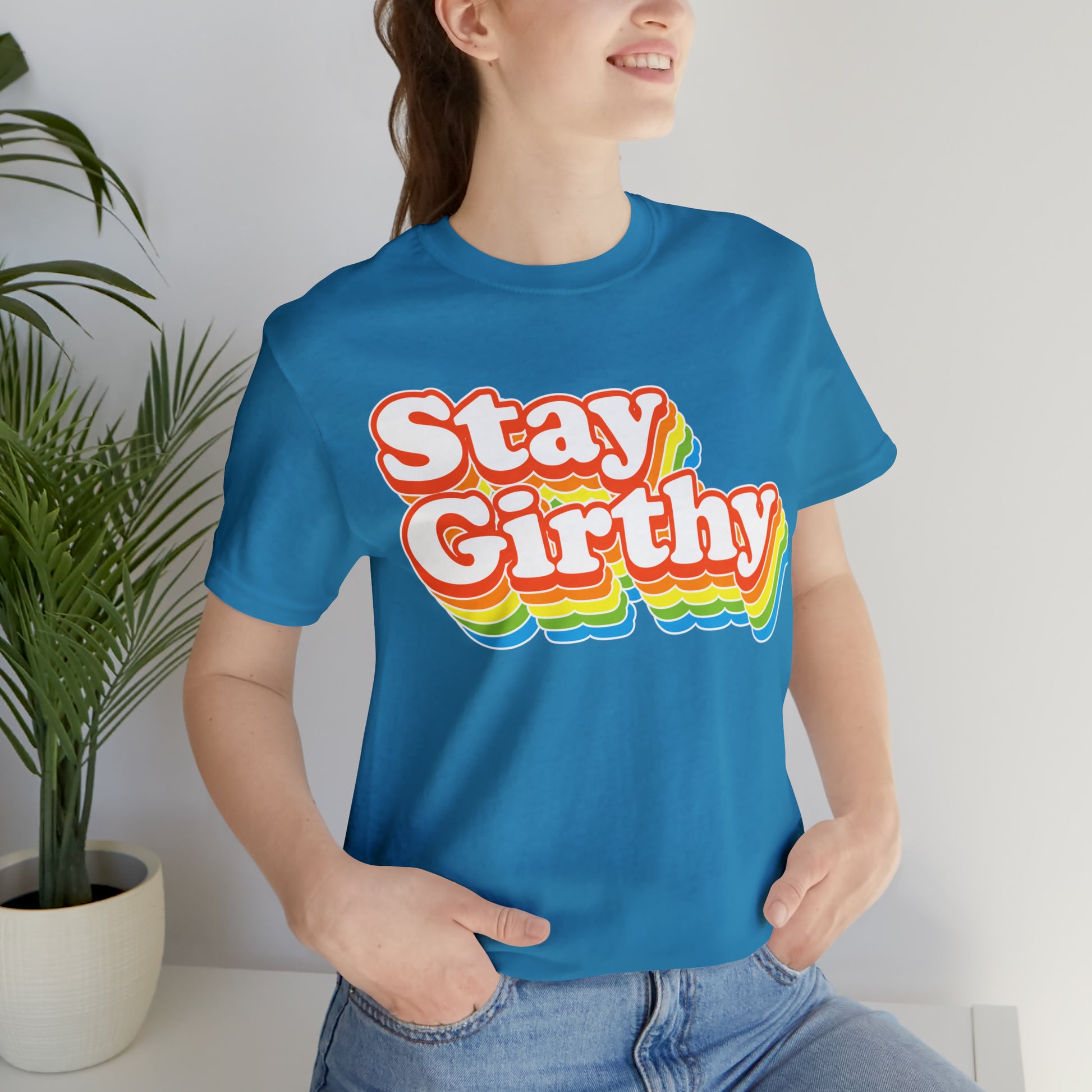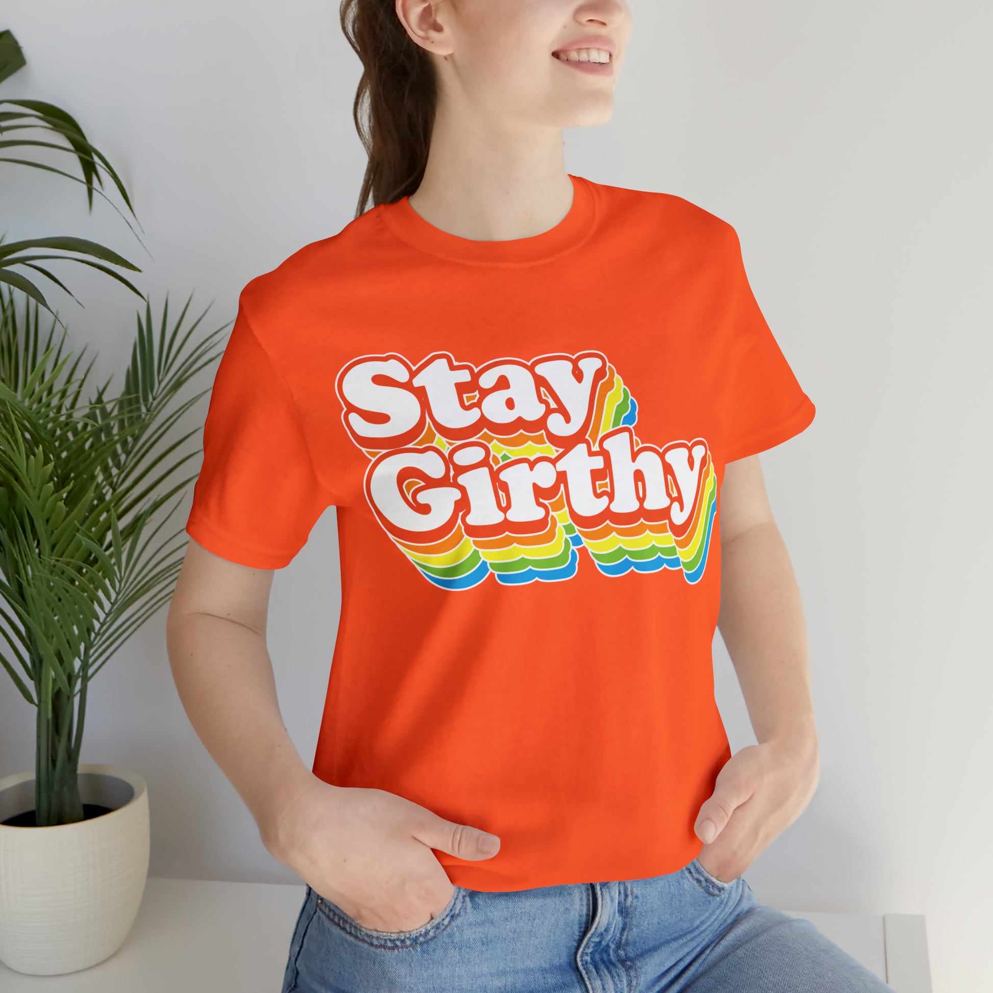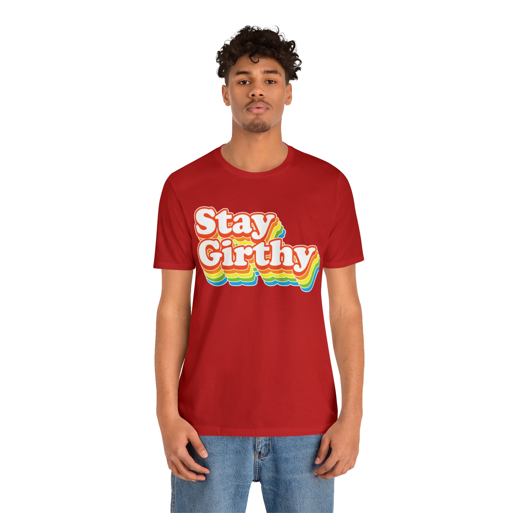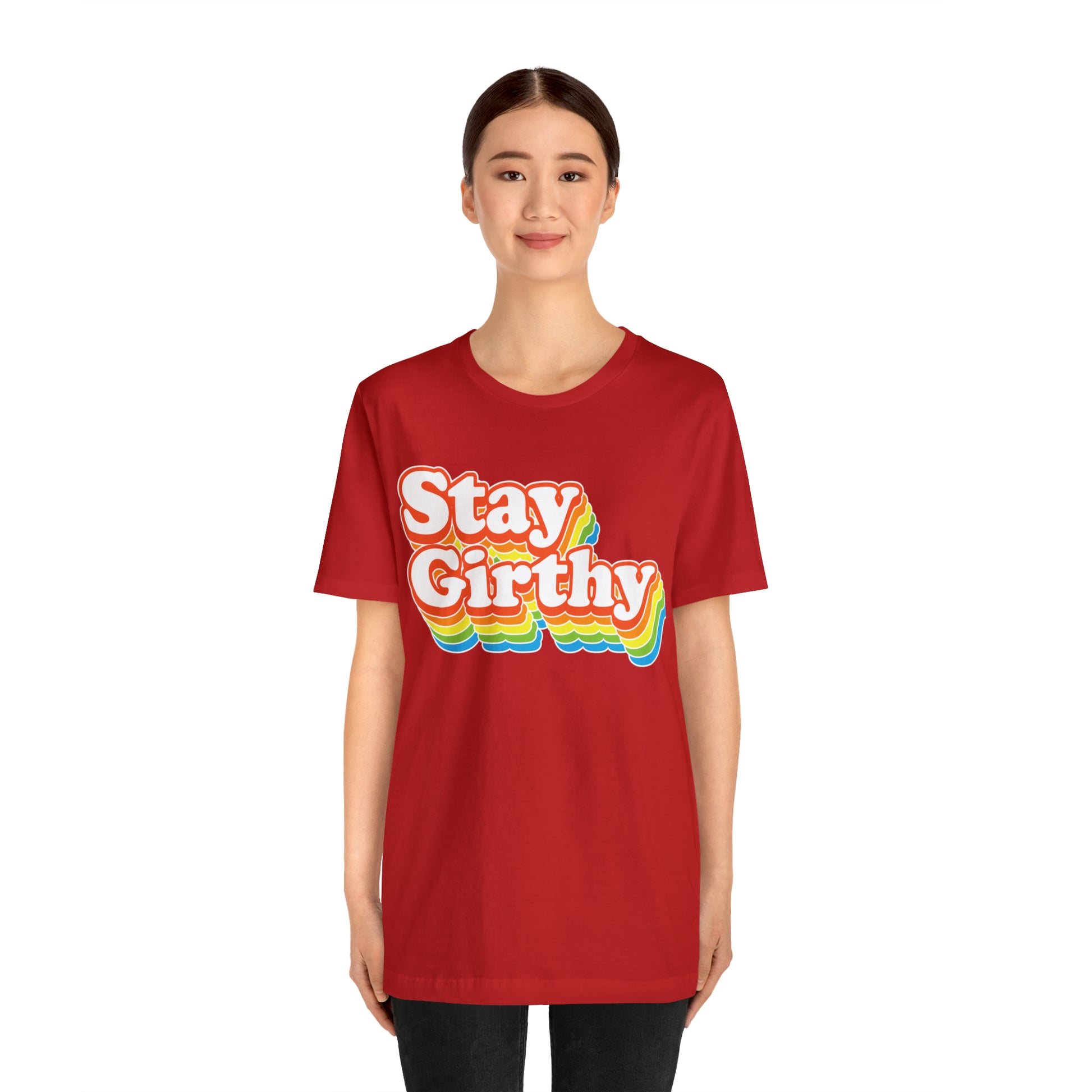 For when you want to be girthy AND groovy, we have this sweet 70s font version of our Stay Girthy t-shirt.
