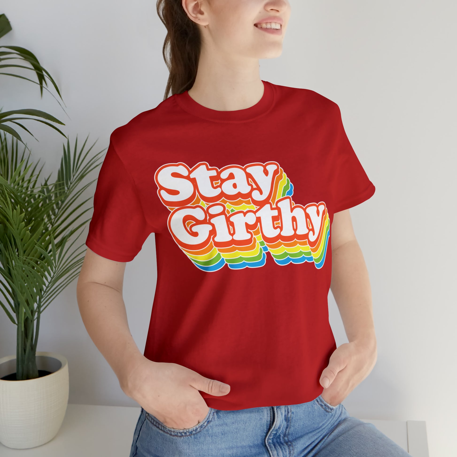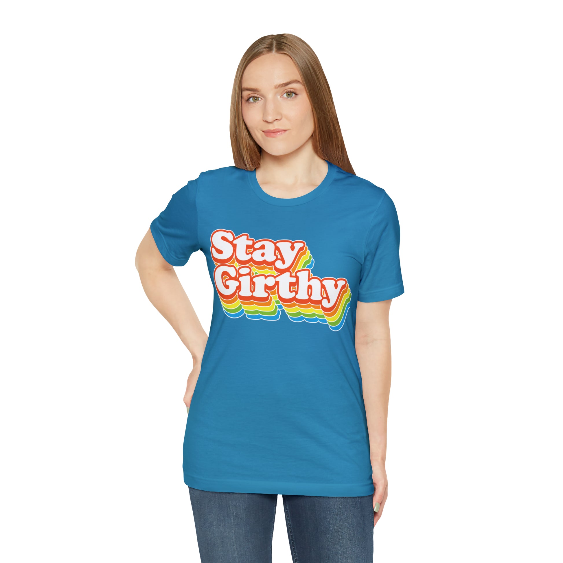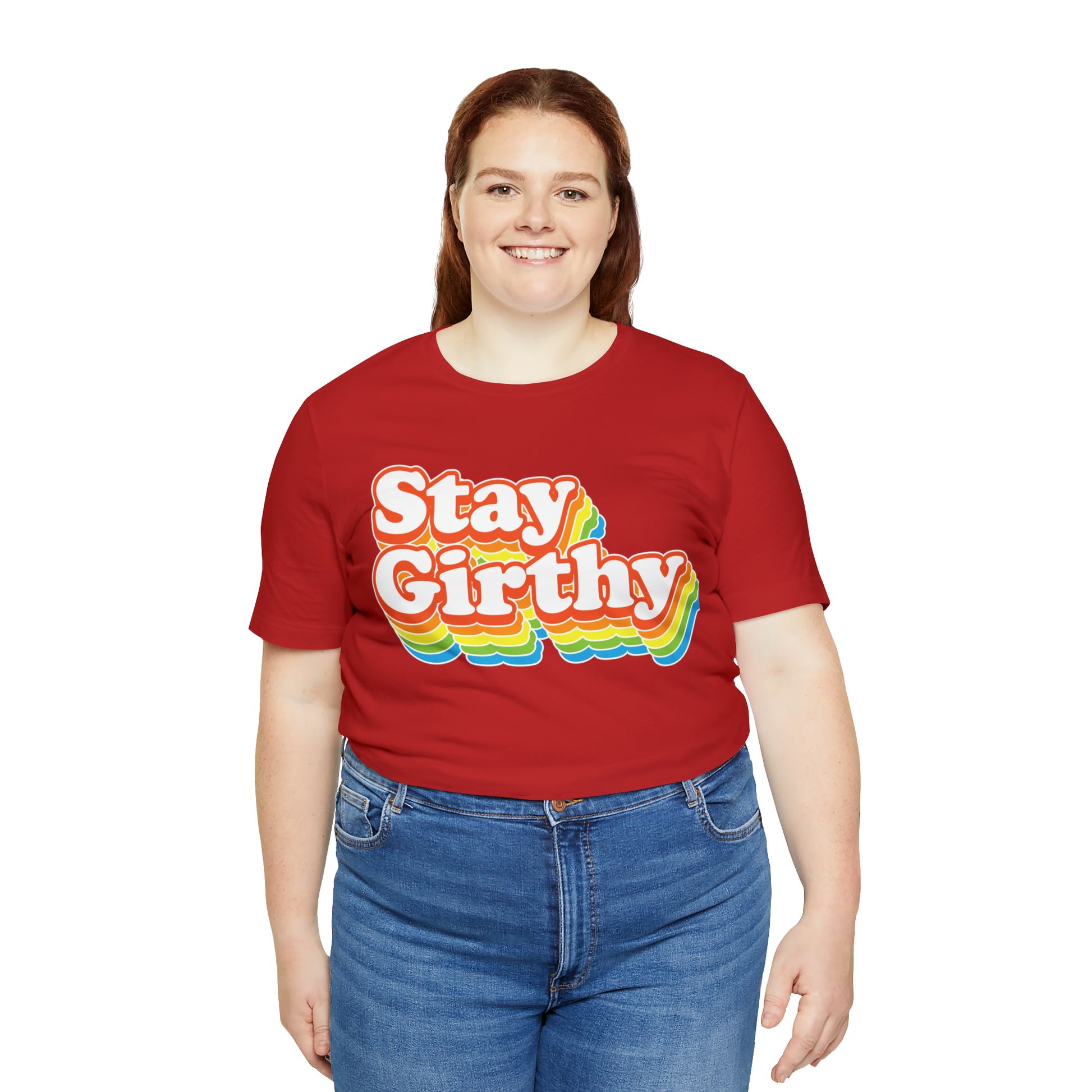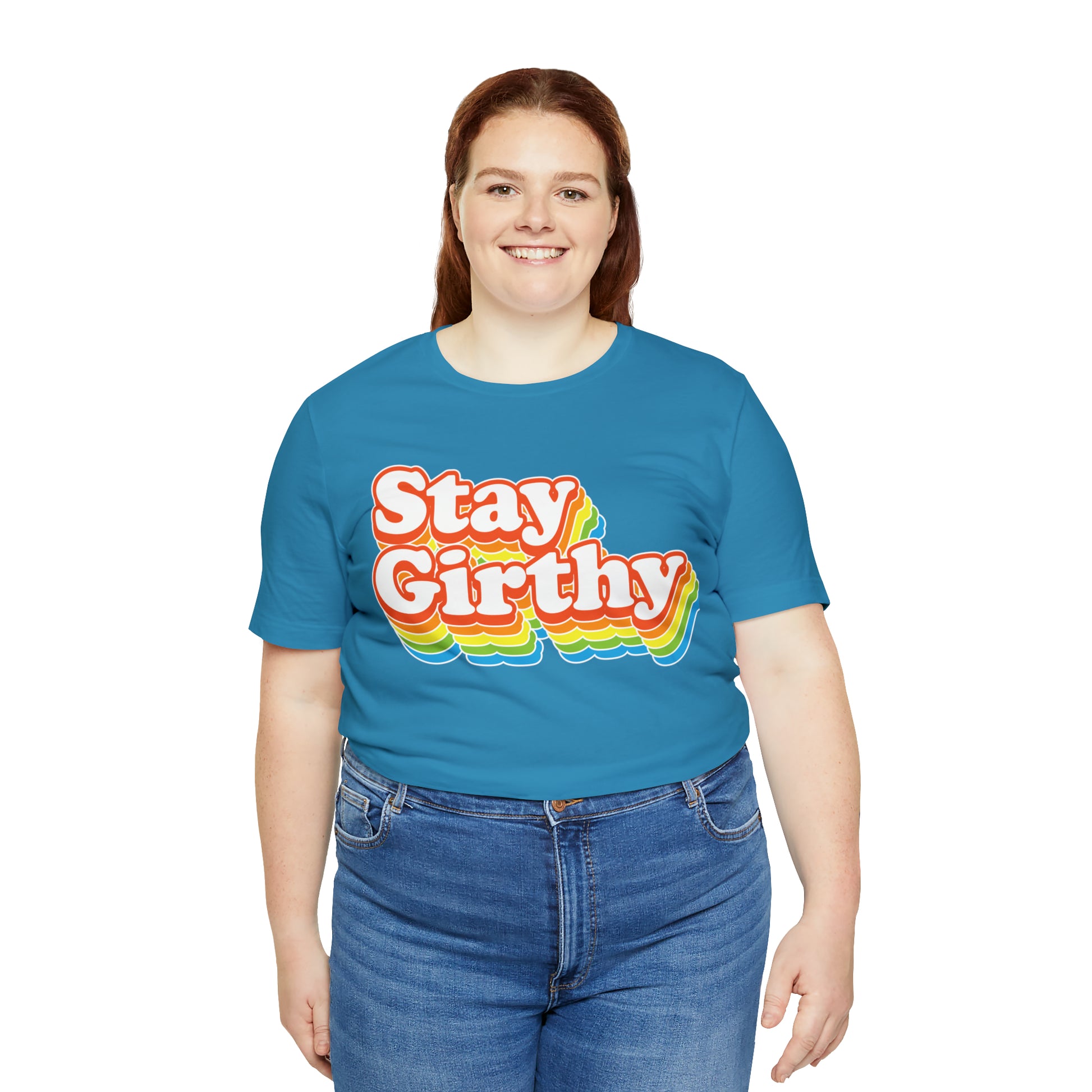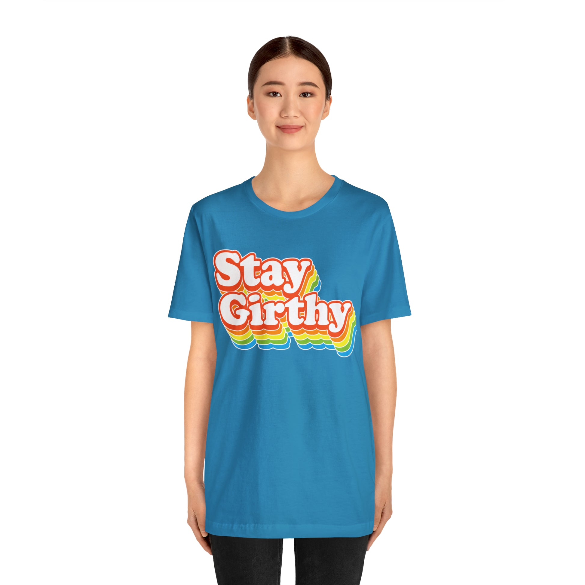 For when you want to be girthy AND groovy, we have this sweet 70s font version of our Stay Girthy t-shirt.