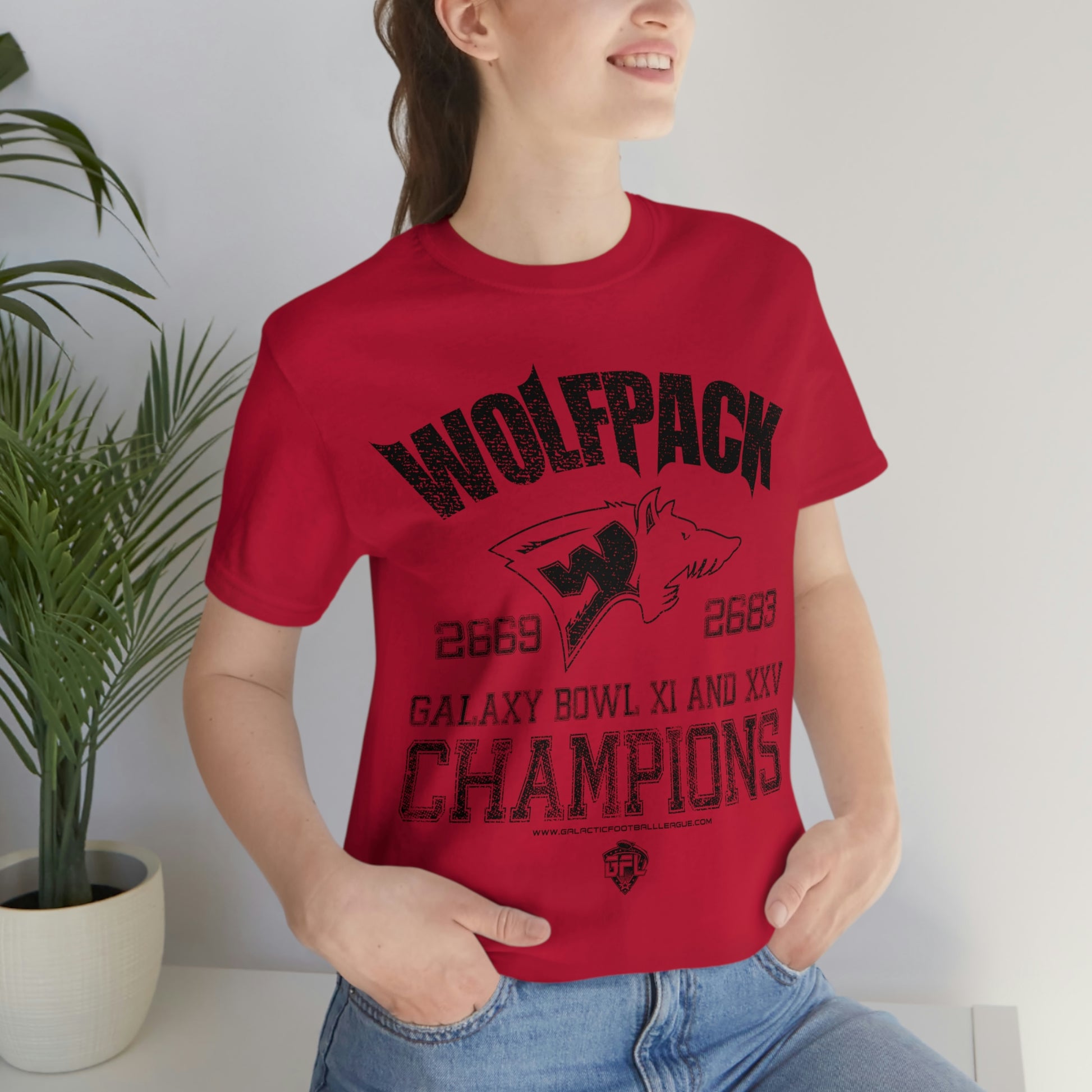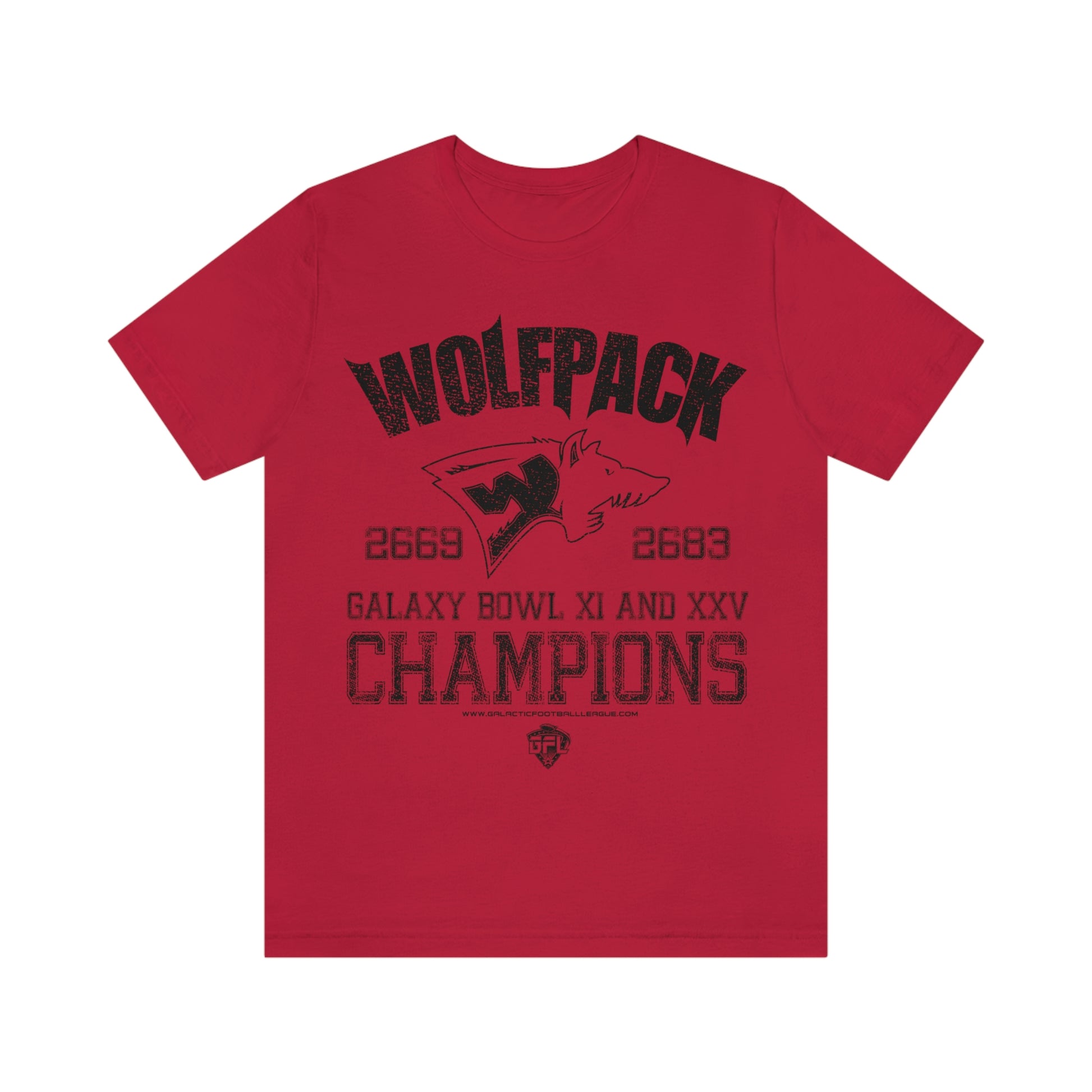 One of the original founding franchises of the Galactic Football League, the Wabash Wolfpack have a decades-long winning tradition and rivalry with the Ionath Krakens. Black ink on red fabric.